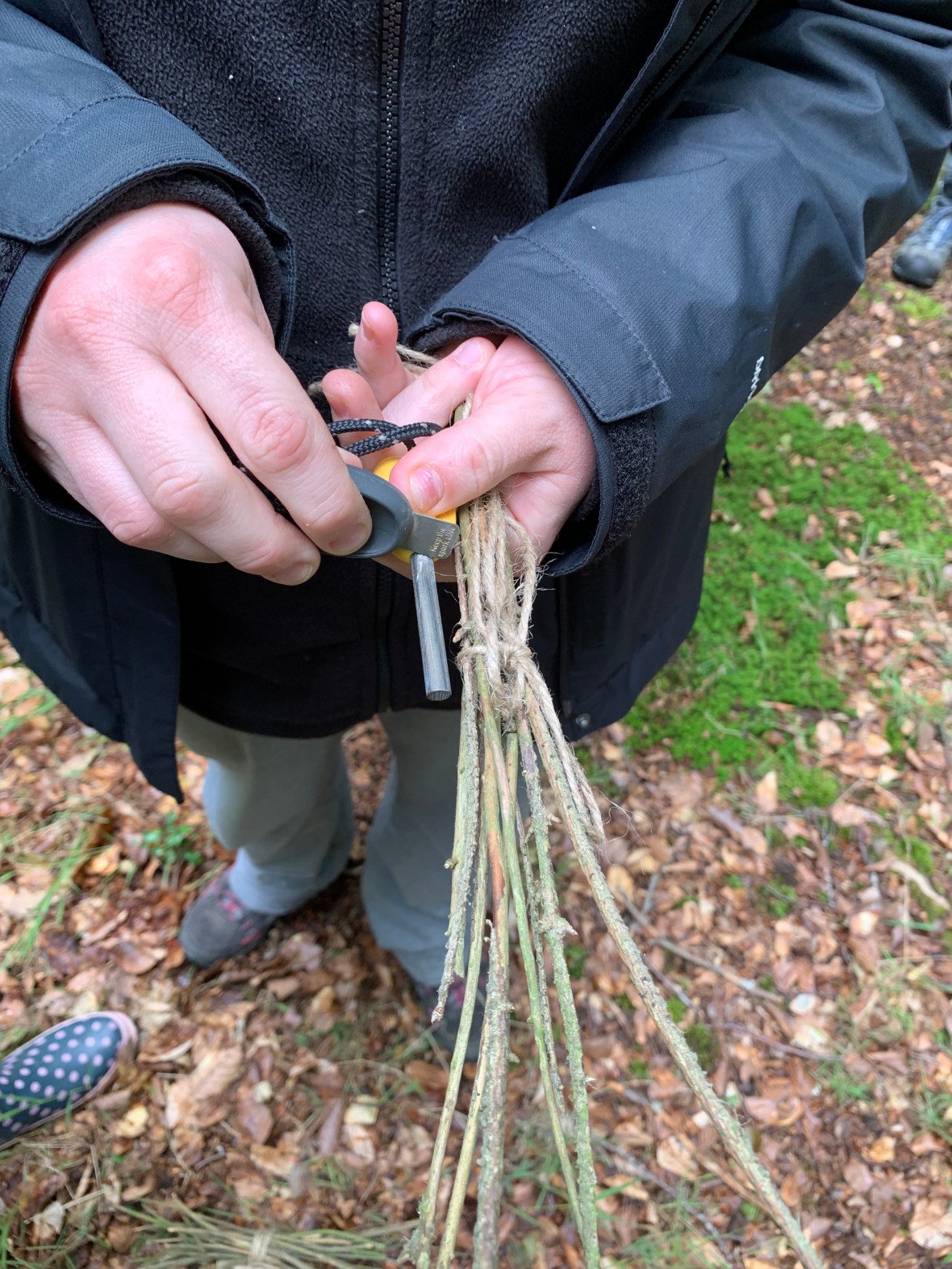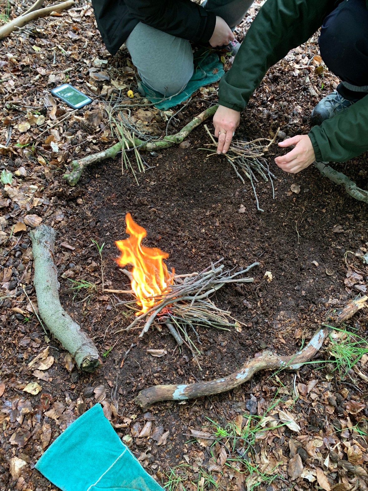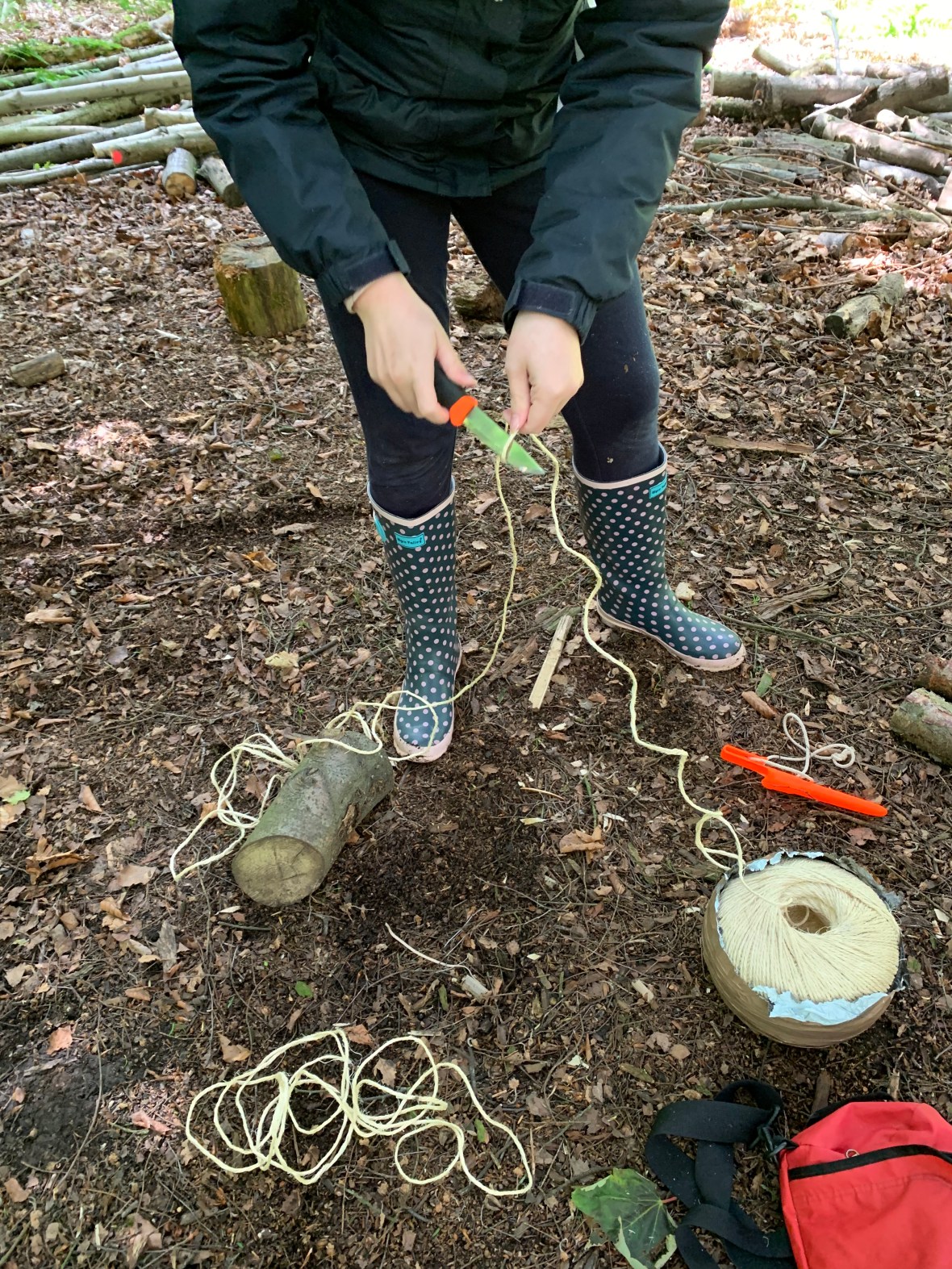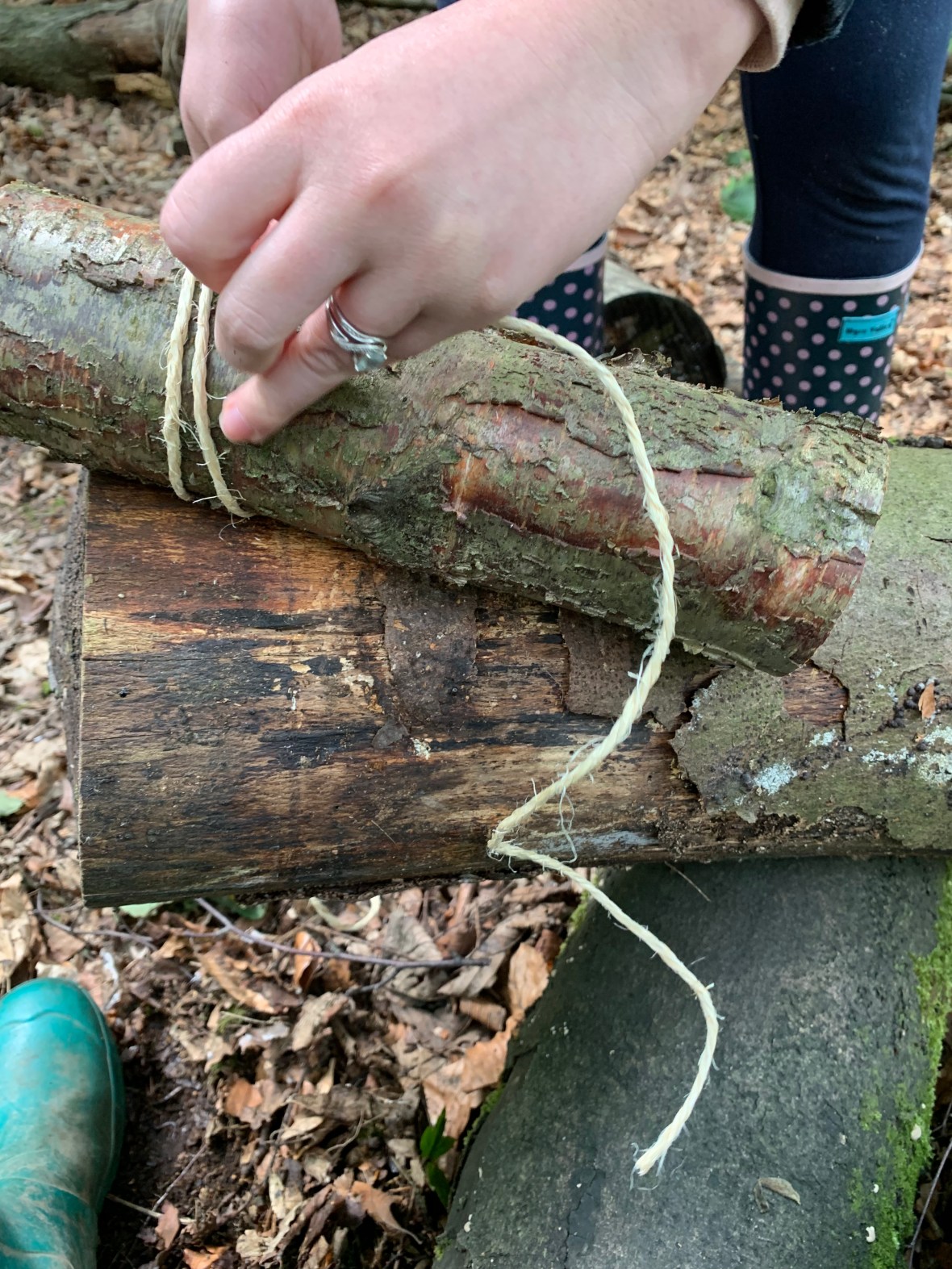 This afternoon we were excited to discover the Forest School Fire Pit and even had the opportunity to redo some of the seating area, putting into practice the various knotting techniques we had learnt during the week. We can’t wait to involve the children and make our own seating area at our pre-school!